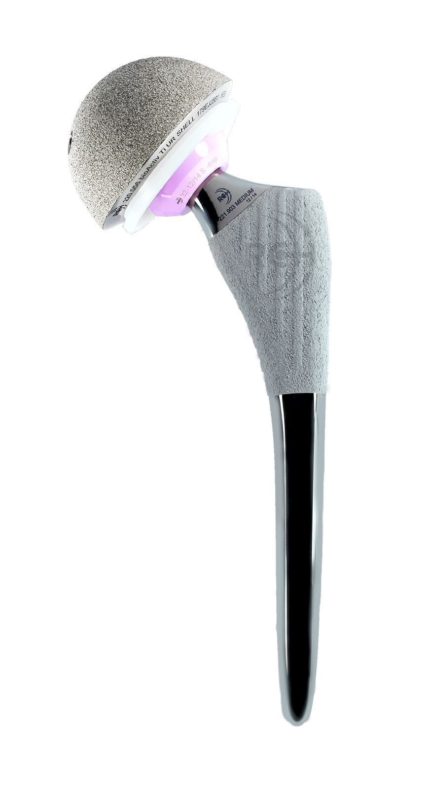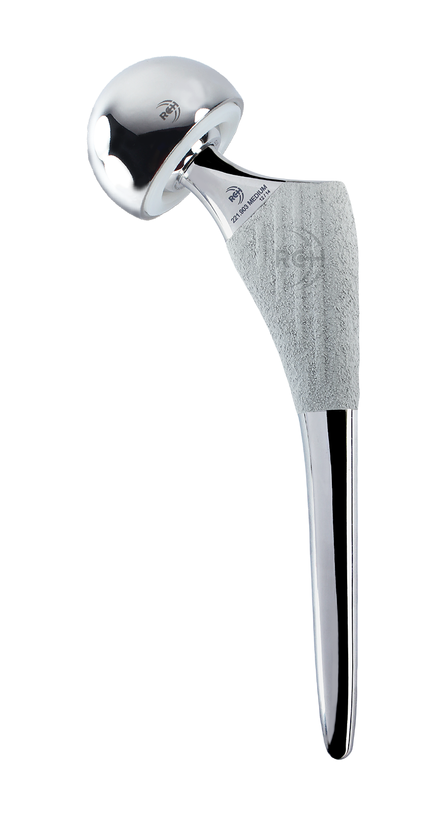 2. Proximally HA and Titanium Porous coated stem which results in rotational and axial stability thus increasing the load carrying capacity of the proximal stem. The secondary anchorage is finally achieved by osteointegration, which is promoted by the HA coated osteophilic titanium alloy and the roughness of the porous surface.